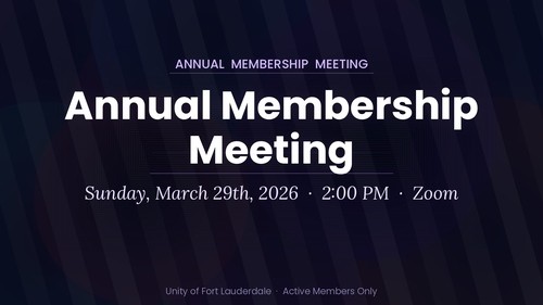 Our next Annual Meeting for our Unity of Fort Lauderdale Members is Sunday, March 29, 2026 at 2:00 PM via Zoom for active members.